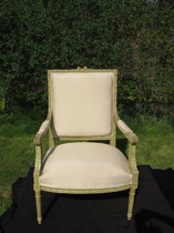 A pair of well carved late 19th century Swedish 'salong' fauteuils in Louis XVI style in old paint.